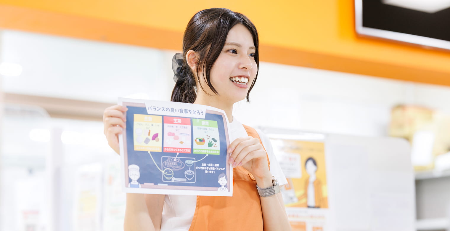 今の店舗は薬剤師や看護師、理学療法士など、さまざまな職種の方と交流できる環境なので、幅広い視点から地域の健康をサポートできる管理栄養士になることを目指しています。