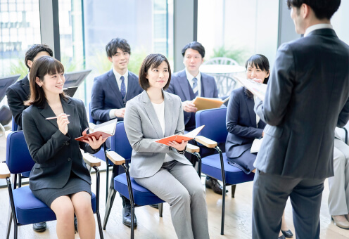 本社研修後のOJTでは、配属先店舗の違いによる習熟度の差が出ないよう、教育担当の先輩社員が研修マニュアルに沿ってフォローしていきます。入社後、12ヵ月・24ヵ月・30ヵ月にはフォローアップ研修を本社で実施、自己到達目標の確認をを行います。また、人事課主導のフォローアップ面談も別途実施しています。